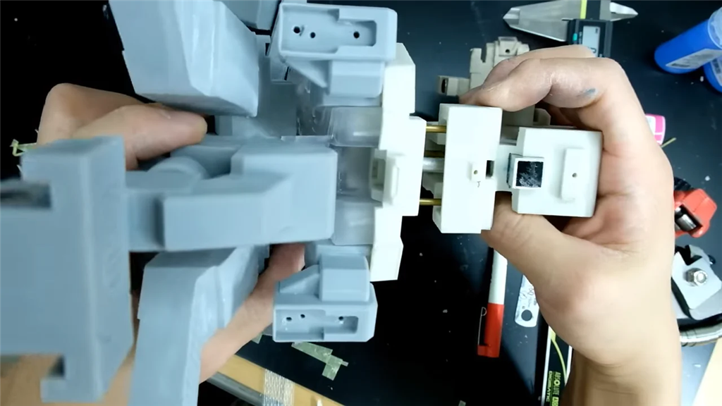 由於他所使用的3D列印UG高達(dá)模型非常龐大,他需要特別注意組裝過(guò)程。模型越重,就需要在關(guān)節(jié)之間提供更強(qiáng)的支撐。