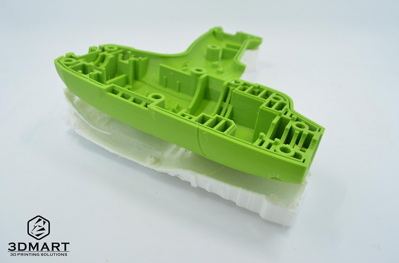 【3D列印快訊】Breakaway分離線材 開印文來囉! 繼水溶性PVA線材之後,Ultimaker又推出了新款的支撐線材Breakaway,到底它的特色跟用處如何呢? 今天就要來帶大家實(shí)際體驗(yàn)列印搭配分離線材的好處囉! 首先使用我們雙噴頭的Ultimaker3列印機(jī)進(jìn)行印製,這次挑選一個(gè)電鑽(半邊)的模型圖檔,下方的部分搭配我們的 分離支撐材,要記得雙料列印時(shí)一定要開塔唷! 這裡我們將設(shè)定調(diào)為層厚0.2mm、填充率15% ,這次的列印時(shí)間約為19小時(shí)。 列印完成後就可以開始拆支撐囉! 相信拆支撐對(duì)很多人來說都是噩夢(mèng)一場(chǎng),常常花費(fèi)許多時(shí)間用工具又拉又拔的拆除,而且也不能一次性的將整塊移 除,通常都還要各別拆除,現(xiàn)在改用Breakaway作為支撐的部分讓一切變得輕鬆多囉! 拆解的步驟一樣是準(zhǔn)備一只尖嘴鉗,夾住支撐材的部分用力的與主體拉開來,分離支撐材的大部分會(huì)成為完整的一 片,就連凹洞處也一併被拉起拆除,只會(huì)剩下非常小部分的支撐需要?jiǎng)兂?,拆除部分的表面也呈現(xiàn)出十分光滑的質(zhì)量。 跟PVA水溶性支撐材相較之下,不用等待漫長的泡水時(shí)間,更能節(jié)省時(shí)間,與一般線材做支撐時(shí)相比也省掉拆除與 打磨的時(shí)間。 上圖為 支撐拆除後的接觸表面,幾乎不需要做後製打磨處理的表面品質(zhì)。 上圖為 拆除的分離Breakaway支撐材 是不是覺得十分方便呢? 趕快買一卷來使用看看,你應(yīng)該也會(huì)迷上這種簡(jiǎn)單拆除支撐的方式的,讓你下次拆支撐的體驗(yàn)更加美好,省時(shí)也省力。