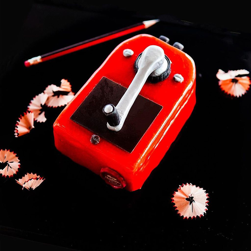 香港君悅酒店的甜點(diǎn)師傅.斯密塔(Smita Grosse),使用真空成型技術(shù),搭配通過(guò)食品安全認(rèn)證的注塑片,在巧克力蛋糕上加入削鉛筆機(jī)的手把,不但融合了兒時(shí)的記憶,也以最低的成本嘗試各種想法,完成削鉛筆機(jī)的最終造型,再進(jìn)行甜點(diǎn)小量生產(chǎn)!
