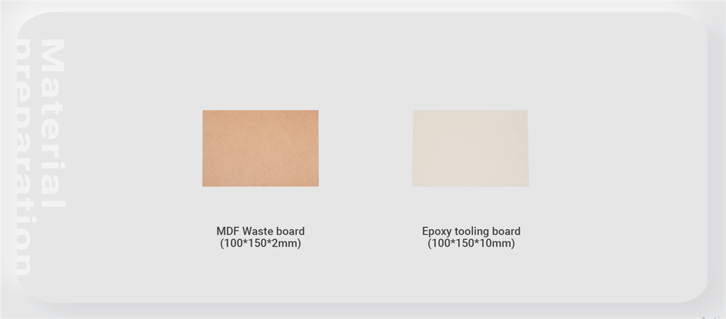 1. 使用尺寸為100*100mm的2mm MDF板切割成廢板。