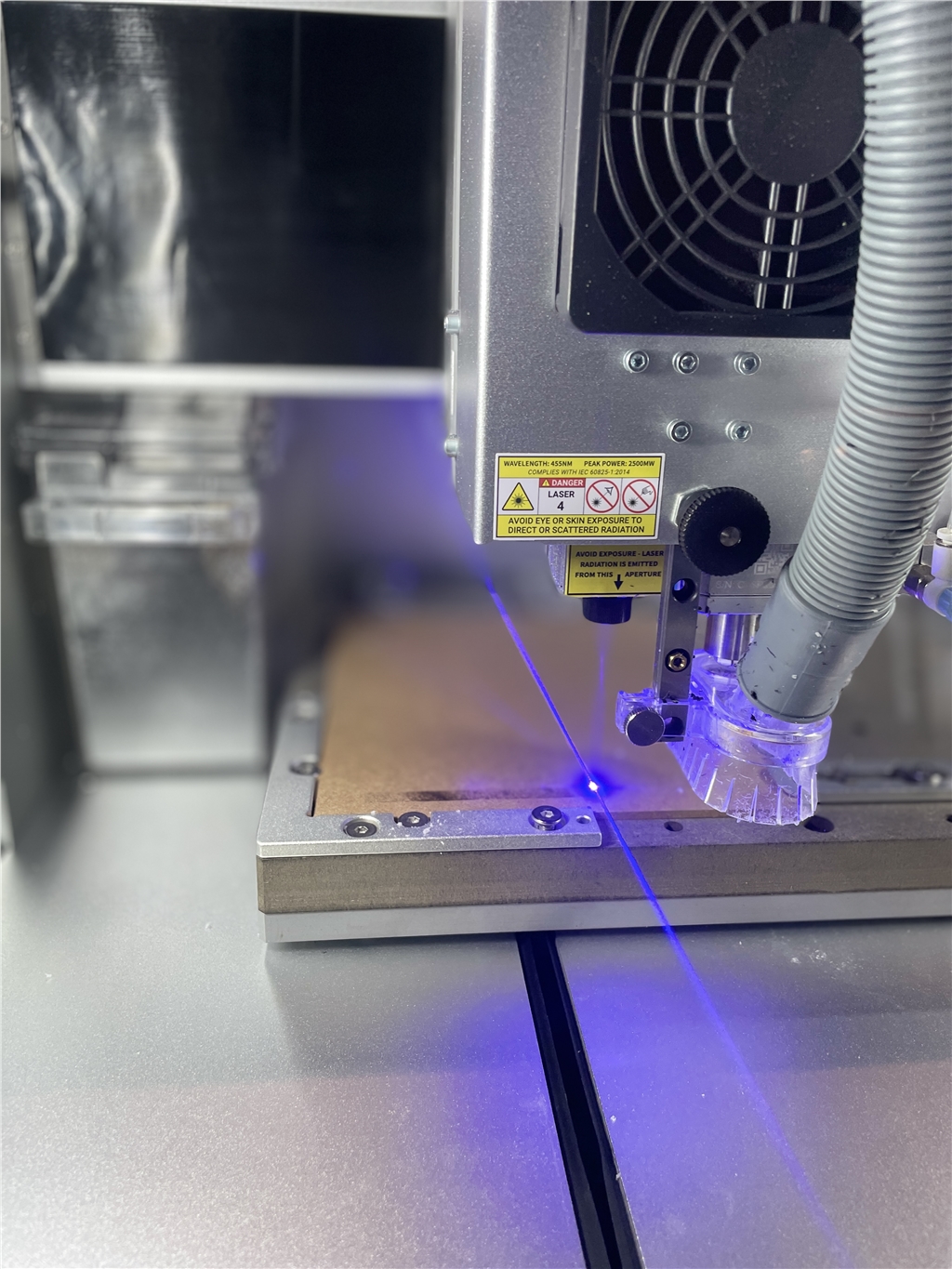 雷射雕刻是Carvera中的輔助功能,我們選擇了一臺(tái)2.5W的雷射主要用於材料雕刻。