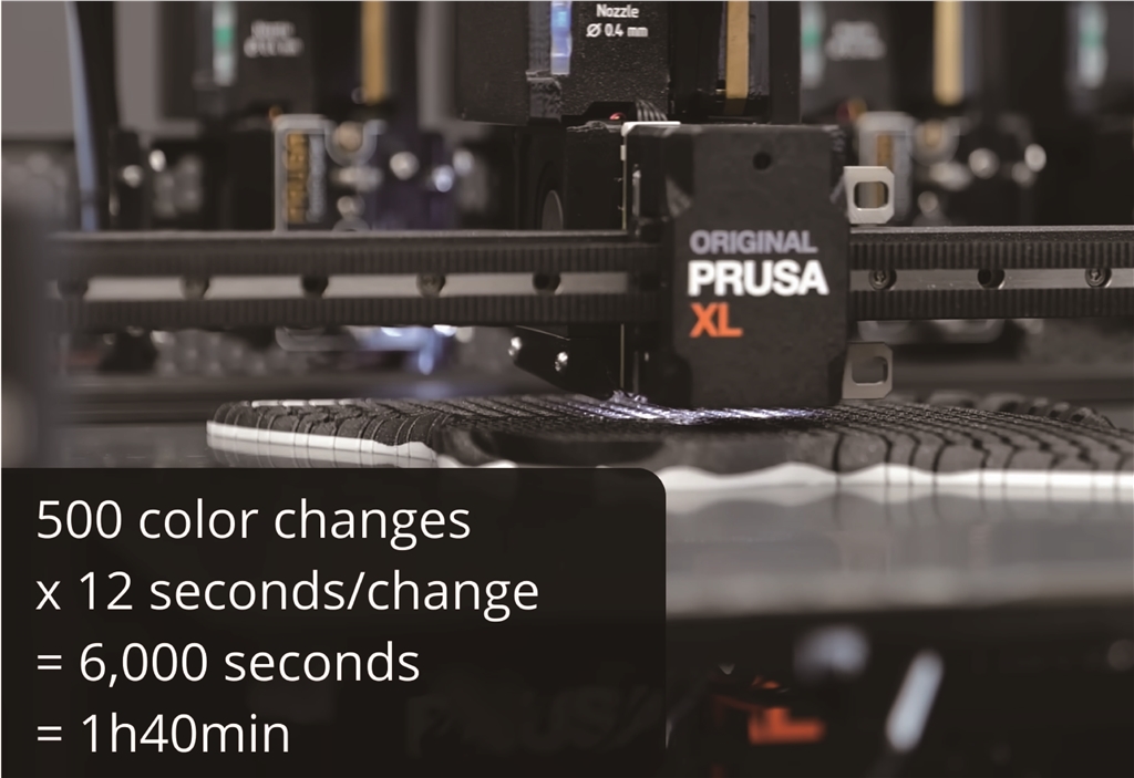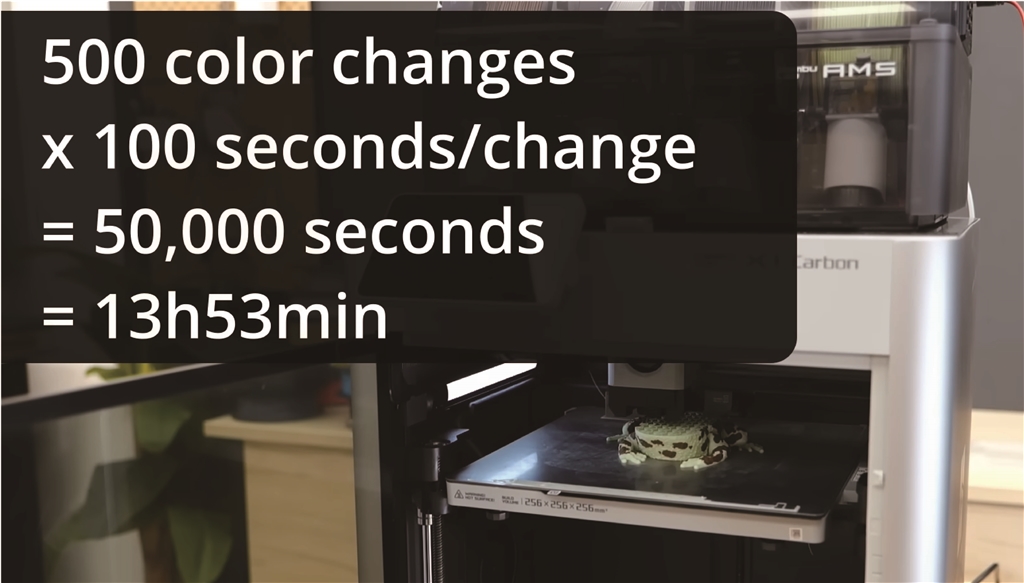 換個角度來說:如果你有 500 種顏色變化,每次平均需要 100 秒,也就是說光是切換顏色和產(chǎn)生廢物就花了近 14 個小時。