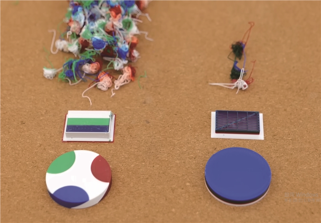 第二個是水平分成四個彩色段的圓柱體。在條紋版本中,每一層都需要交換三次顏色,總共有 40 層,大約有 120 處變化。