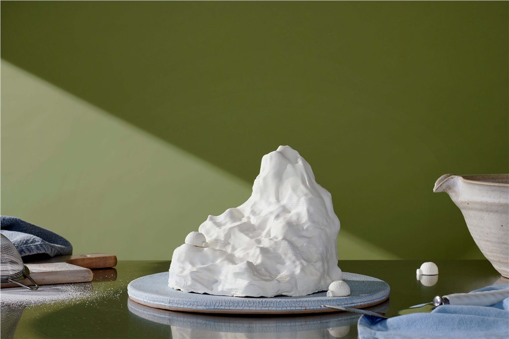 另一方面,冰山造型極具野心。保羅用調(diào)溫巧克力填充模板,去除多餘的巧克力,製成可填充的冰山外殼,然後他在裡面裝滿不同層的冰糕、海綿蛋糕與更多的巧克力。所有組件一旦都組裝好,冰山就可以脫模啦!正確調(diào)溫的巧克力在凝固時(shí)收縮,代表使用Mayku的彈性材料片時(shí),脫模會更簡單快速。