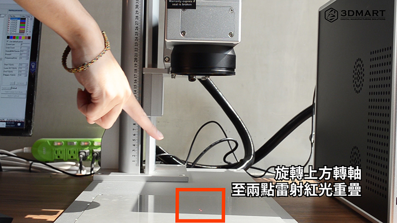 開始雷射雕刻前,需將鏡頭內(nèi)投射出的兩點紅外線雷射光重疊。