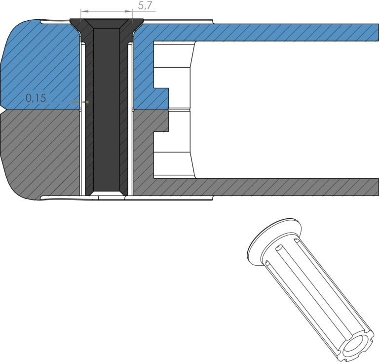 此款螺釘周圍帶有0.05-0.1mm的間隙,用以透過增加磨擦力的方式組合元件,如果想要將摩擦力降低,則可以透過加大間距的方式減少接觸面積。