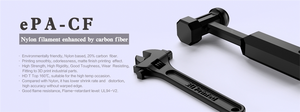 2) ePA-CF是一種綠色環(huán)保且具有高強(qiáng)度和高剛度的工業(yè)用耗材