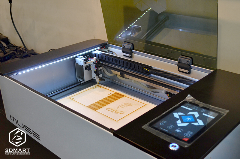MUSE雷射加工機(jī)的最寬邊不到一米,底板可以拆卸讓下方的切割材料無(wú)限擴(kuò)張(例如:放上門(mén)板或吉他進(jìn)行雕刻);相比一般工業(yè)機(jī)種非常精巧且性能優(yōu)異,使用右方的彩色觸控屏點(diǎn)選操作,讓工作更輕鬆。