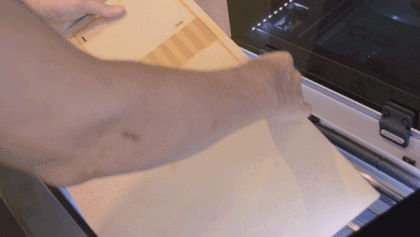 按下預(yù)示功能會(huì)看到雷射頭空跑即將切割的最大範(fàn)圍,放入材料後就可以開(kāi)始雕刻囉!如下的動(dòng)態(tài)可以看到圖案會(huì)像這樣漸漸浮現(xiàn),這次的圖案大小只要約十分鐘左右的時(shí)間就能完成,非??焖伲?/span>
