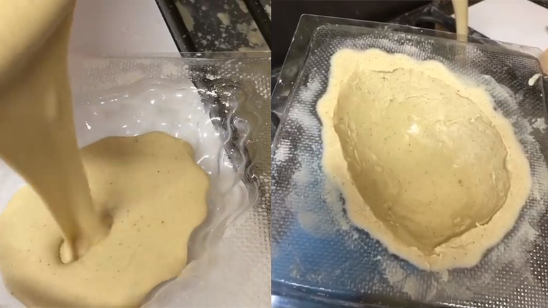 模型的前置作業(yè)完成後,將融化的巧克力倒入模具中,這時候可以選擇製作實心、或挖空成中空造型,再將填滿巧克力的模具一起放入冰箱冷卻。