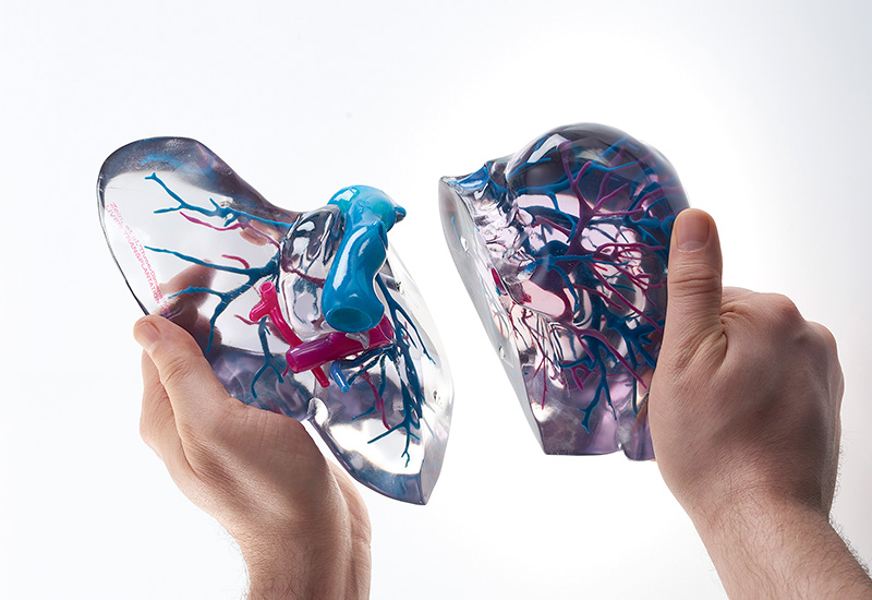 (VeroClear樹脂能精準(zhǔn)表現(xiàn)玻璃、壓克力的透光效果,還可與其他色彩搭配應(yīng)用,廣泛用於人體模型、醫(yī)療術(shù)前規(guī)劃…等教學(xué)應(yīng)用。)