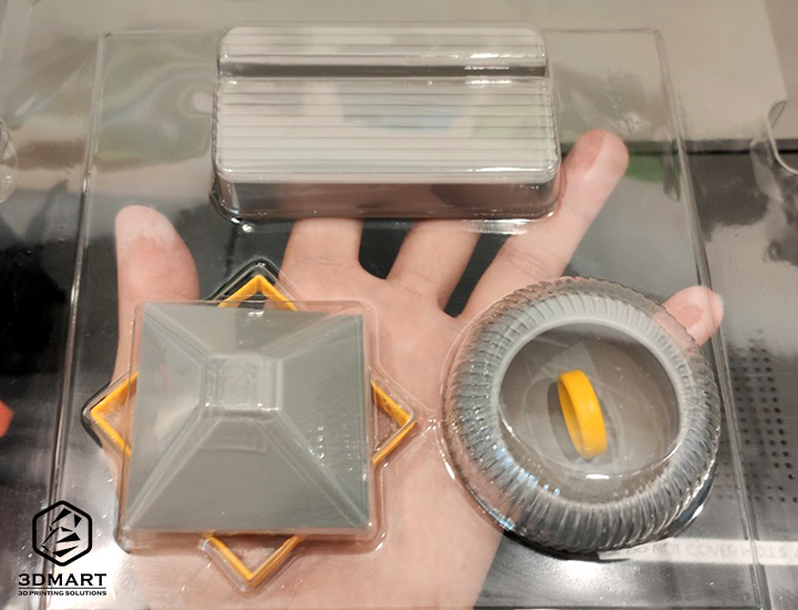 圖片最上方的就是一系列成型模具,最上方的階梯狀原型在塑殼後可以用來當(dāng)作手機(jī)架或肥皂架,大家可以自行嘗試,我們待會就選用下方神祕的四面體示範(fàn)給大家看。