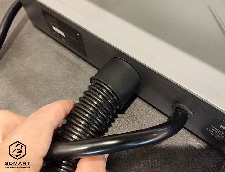 接著和你想的一樣簡單,將連接管另一端接上吸塵器、吸塵器的插頭也接上FormBox後方的插座孔就完成了,並將FormBox接電、吸塵器開關(guān)打開後就可以開始進(jìn)行測試囉!