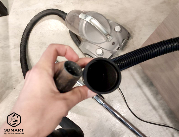 接下來就是串接吸塵器的部分了,首先我們隨便借了一臺小型吸塵器,將吸塵器前端的吸頭拆除。拿出剛才的黑色連接管,一端接上Mayku FormBox後方的圓形插孔中,橡皮塞塞入的時候應(yīng)該會感覺到一點阻力,完全塞緊可以確保完美的真空成型效果。