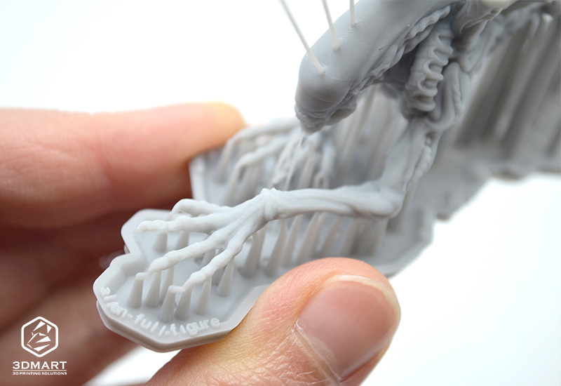 至於大家最關(guān)心的實(shí)測(cè)效果,我們使用Phrozen原廠的類ABS灰色樹脂,經(jīng)過(guò)3小時(shí)的列印後「異形」就此誕生;初步從列印平臺(tái)上觀察,模型的細(xì)節(jié)和表面都很完整,支撐皆能順利生長(zhǎng)。