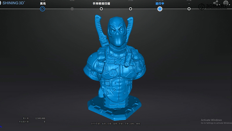 接著我們使出細(xì)節(jié)度高、結(jié)構(gòu)複雜的3D列印死侍(20 x 18.5 x 15cm),來挑戰(zhàn)Einscan Pro HD的掃描效果,使用手持高清模式,環(huán)繞掃描模型的每個面向,可以依照模型大小自由移動,掃描範(fàn)圍廣泛不受限;3D掃描物是黑色布料、透明玻璃、金屬反光等會影響光照結(jié)果的材質(zhì),別擔(dān)心!只要在表面噴上掃描噴粉顯像劑,就可以順利進行掃描?。?a href="http://www.yztcys.cn/en/news/aesub-3d-scanning-powder-shining-scanner">點我看:自動消失的掃描噴粉?)