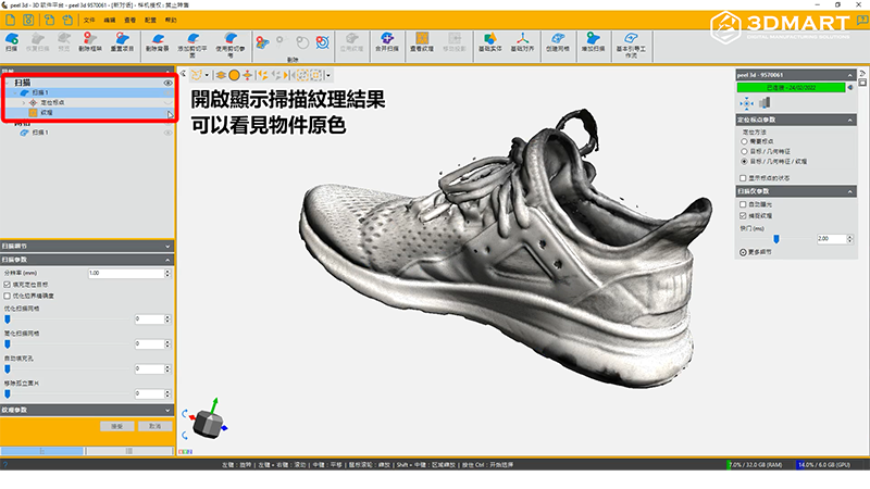 【3D掃描比較】Peel 3d和SHINING 3D掃描:球鞋原色紋理!