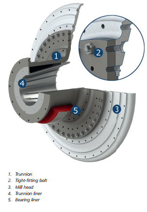 而客戶發(fā)現(xiàn)他們的SAG磨機(jī)損壞了;在研磨過程中,材料從機(jī)器中洩漏出來。他們很快發(fā)現(xiàn)機(jī)器的進(jìn)料和出料輪轂,負(fù)責(zé)材料轉(zhuǎn)移的重要部件已經(jīng)裂開。