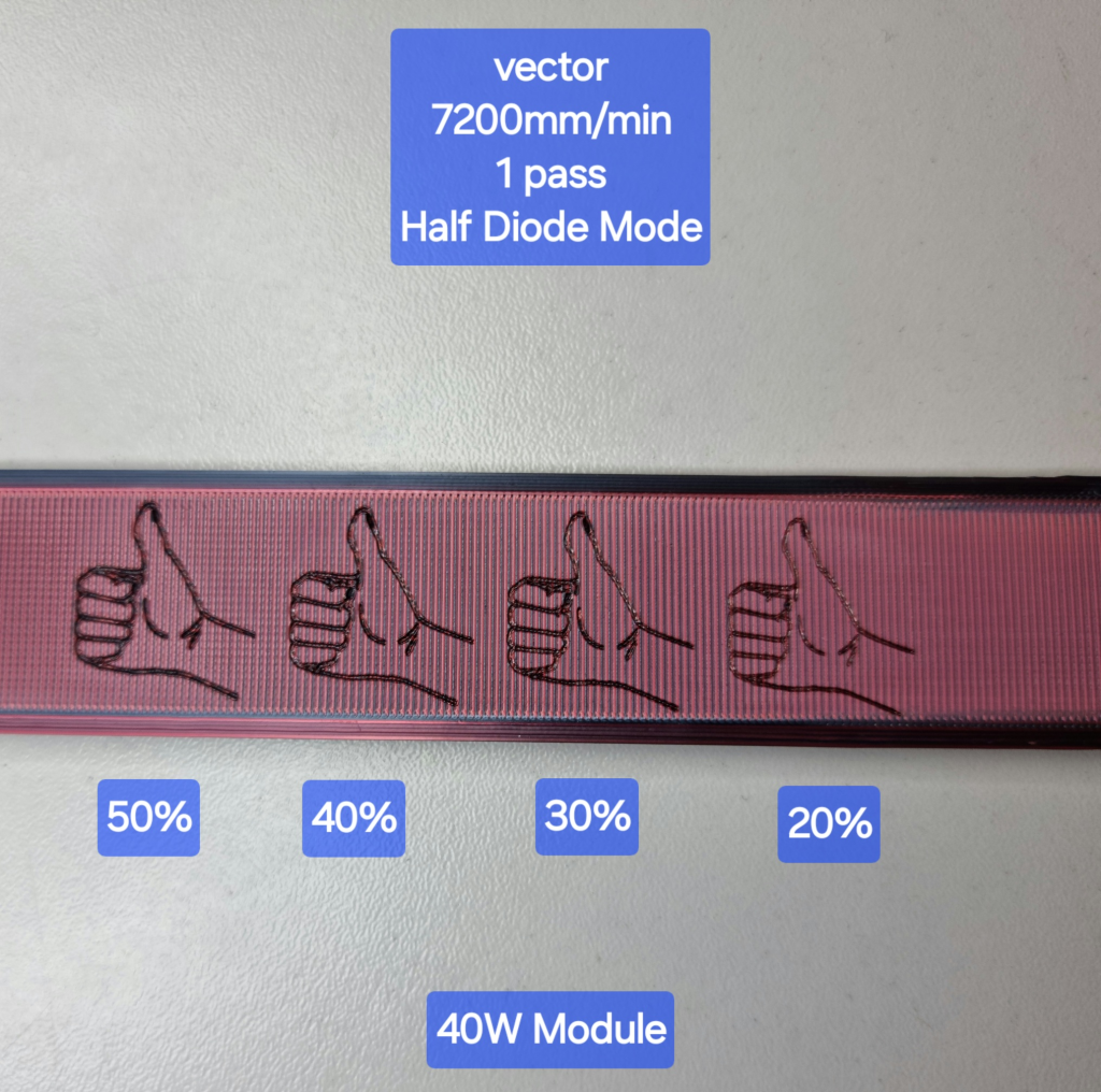 2W 紅外雷射模組在各種金屬和塑料材料上產(chǎn)生更高的細(xì)節(jié),導(dǎo)致更清晰和更明顯的雕刻效果。與藍(lán)光雷射相比,2W 紅外雷射在5052鋁、PCB、PLA、白色和黑色丙烯酸、陽(yáng)極氧化鋁和矽膠等材料上取得了更好的雕刻效果。