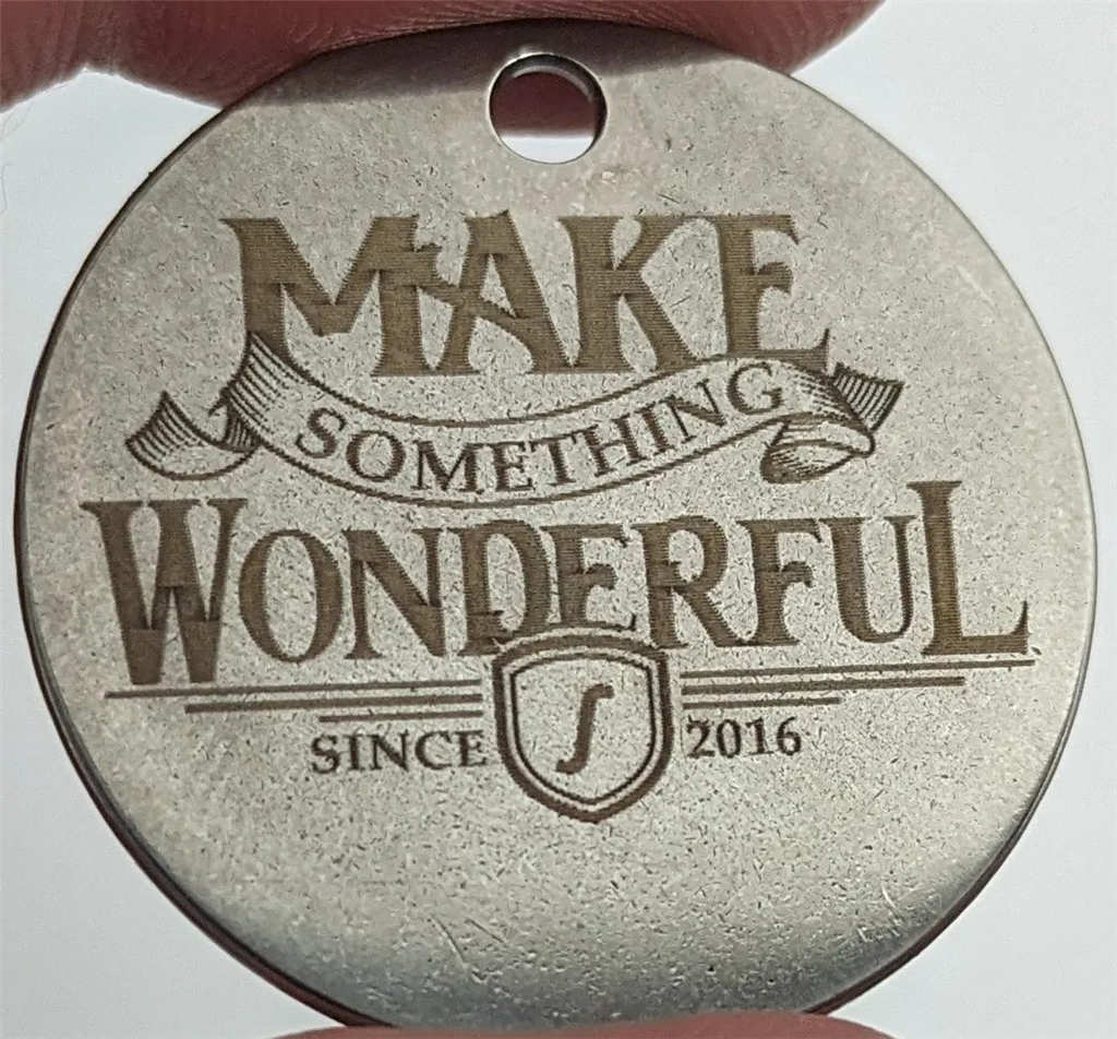 例如,Dave 進(jìn)行的測(cè)試:當(dāng)高度改變時(shí),雕刻質(zhì)量並未受影響。多功能刀的中心有一個(gè)穿孔工具,將工作區(qū)域提高了5mm,雕刻仍然清晰!在照片中,甚至親眼看,這給人一種工具平放在那個(gè)表面的錯(cuò)覺(jué)!這給了我一個(gè)有趣的設(shè)計(jì)想法,我很興奮能用雷射實(shí)現(xiàn)。像迷彩、錯(cuò)覺(jué)圖案和幾何圖案這樣的設(shè)計(jì)在這上面看起來(lái)都會(huì)很棒。