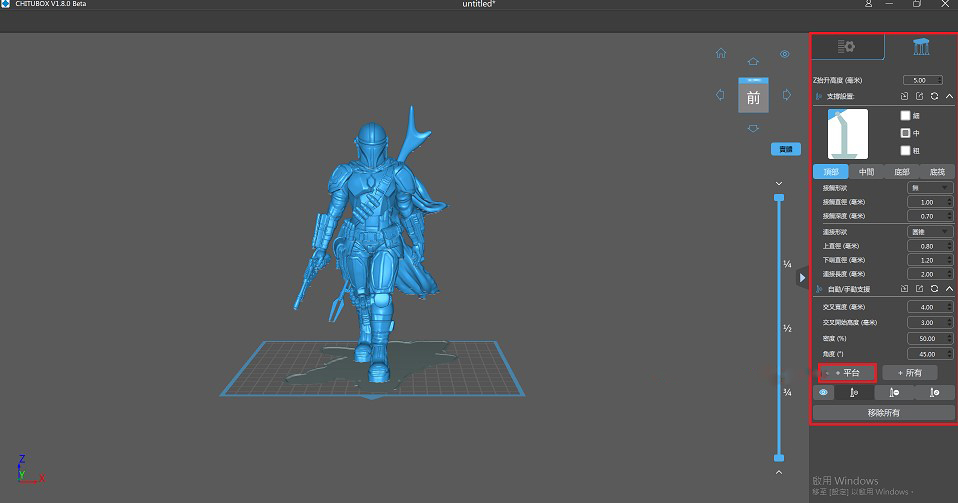 4. 置入3D模型檔案,點擊「建立支撐」頁面,點選 「