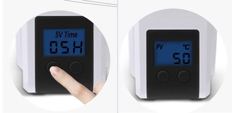 防潮盒內(nèi)的濕度,主要是由左/右按鈕、數(shù)位螢幕顯示來進行調(diào)整設(shè)定,將溫度設(shè)定好後,長按左鍵會出現(xiàn)時間設(shè)定。