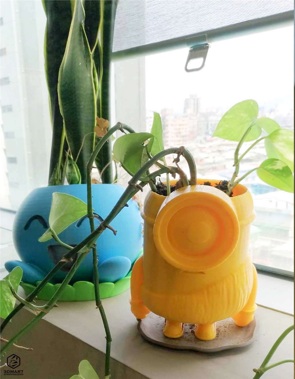 【3D列印應(yīng)用】辦公室新夥伴:3D列印小小兵進駐! 3DMart的辦公室中有不少綠化盆景,最近我們給他們換上新衣服也增添辦公室的樂趣,首先鎖定的就是沒頭毛又可愛的小小兵! 這次使用的是Ultimaker 3,主體是PLA搭配超級小幫手PVA水溶性支撐;經(jīng)過2天17小時列印完成後拿到水裡泡澡囉! 給大家看看泡澡到一半、流鼻涕的小小兵,PVA水溶性支撐在列印完成後是硬脆的,放進水裡之後會像圖中一樣慢慢融化並且可以完全溶解在水中。 清潔過後先讓大家看看3D列印完成的樣子,裸體的小小兵直接拿來使用也是非常漂亮。 再來就是換盆栽的大工程,可以看到左邊的盆栽外觀醜醜的不太好看;我們即將換到可愛的小小兵裡面並讓小小兵長頭髮。首先要先放入一些新土,並將舊土混和一些到裡面。接著才將植物的根部連部分的土一起放入。 先讓大家看看換盆好之後的裸體小小兵,比起原本的盆栽已經(jīng)好看許多;不過這樣還不夠,我們準(zhǔn)備用壓克力顏料幫小小兵穿衣服囉! 由於FDM形式的3D列印仍然會有些許紋路,所以在上壓克力顏料的時候要多塗幾層;想要嘗試的朋友記得顏料要乾一層再上另一層會更漂亮,慢工出細活、千萬別心急??! 對比單純的3D列印成品,上色後的小小兵顯得更有精神,歡迎大家也列印自己喜歡的腳色動手試試看!如果沒有3D列印機,我們也提供高品質(zhì)代印服務(wù)喔!所有最新消息都會在我們的粉絲專頁上分享,歡迎大家持續(xù)關(guān)注! 列印你的小小兵:https://www.myminifactory.com/object/3d-print-minion-stone-age-planter-28678 粉絲專頁:https://www.facebook.com/www.yztcys.cn/