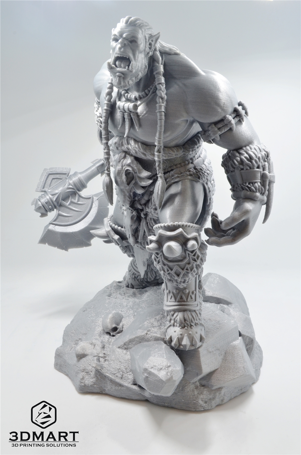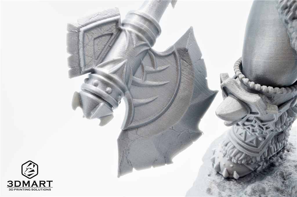 【3d列印應(yīng)用】玩過魔獸世界必知! 怒吼的杜洛坦 你喜歡玩電玩嗎? 若是電玩愛好者的話,那麼曾經(jīng)風(fēng)靡一時的魔獸世界,想必你一定有玩過吧? 在魔獸世界裡的厲害角色-杜洛坦,你還記得他嗎? 這次makerfaire2017展覽也特別帶他出任務(wù),十分吸引大家的目光唷! 就讓我再帶大家看看列印過程與細(xì)節(jié)照片吧! 這次我們都是使用Ultimaker 系列(左為Ultimaker 3 Extended 右為Ultimaker 3)的 3d印表機(jī)列印,兩臺同時一 起印更快速。 雙噴頭的設(shè)計讓我們可以使用Ultimaker PLA 銀色與Ultimaker PVA水溶性支撐線材,設(shè)定的部分將層厚調(diào)到0.15mm 、填充20%,全部列印完的時間需要150小時。 圖為主體上半身3d列印完成 圖為手跟腳3d列印部分 列印完成後,小心地從3d印表機(jī)中拆除,接著只要丟進(jìn)水中,等待他慢慢溶解PVA支撐材的部分,溶解的時間約為 20小時。溶解完成之後就只要將各個零件組裝起來,就大功告成了! 接著讓我們一同欣賞列印的成品吧! 看看霸氣怒吼的杜洛坦,多威風(fēng)呀! 臉部表情與上半身的細(xì)節(jié)都有鉅細(xì)靡遺的列印出來 背面也有許多毛皮的細(xì)節(jié),也都通通沒漏掉 杜洛坦側(cè)面照再來一張,這胸肌真的很厲害! 嘿嘿 斧頭上的裂痕居然也印出來了,真是超級逼真的啦!!! 還看不過癮嗎? 我們還拍了360度照片,可以慢慢地自己邊轉(zhuǎn)邊看欣賞唷! 喜歡這隻魔獸世界的獸人-杜洛坦,也可以自行到gambody網(wǎng)站(下載點(diǎn))購買唷!