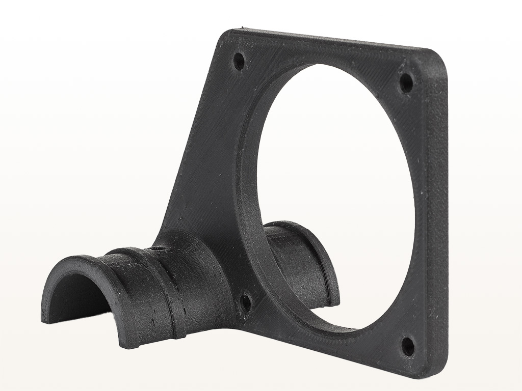 Erik Schwartz賽車隊與Ultimaker合作,在要求嚴(yán)苛的汽車使用情況下測試複合材料,這個零件是它們提供價值的完美例子。 Schwartz賽車車輛上的CVT離合器系統(tǒng)產(chǎn)生大量熱量。皮帶溫度可能超過120°C。保持皮帶溫度盡量低是維持皮帶壽命的關(guān)鍵。此支架在車架上固定一個大的軟管,充當(dāng)進氣口。碳纖維複合材料具有較高的熱變形溫度,列印品可以在高熱區(qū)域附近承受而不變形。