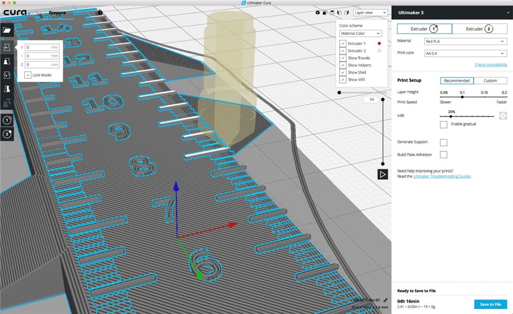 【3D列印快訊】Ultimaker Cura 3.1正式版發(fā)布 現(xiàn)在已經(jīng)推出Ultimaker Cura 3.1的穩(wěn)定版本了。新版本是奠基於所有Ultimaker Cura以前的版本上,具 有新的切片功能,調(diào)整和修復功能。我們要感謝每個花時間測試Beta版本的人,幫助我們創(chuàng)造最佳的用戶 體驗。 更新重點 •0.25mm AA 列印噴嘴的新產(chǎn)品,新的列印噴嘴具有超精細的線寬,可用在高細節(jié)的表面處理。 •新產(chǎn)品Breakaway,一種新型的乾燥後處理材料,可以快速輕鬆地移除。 •增強圖層視圖 - 通過彩色表示進行速度的實時仿真列印策略,獲得更聰明的列印工作流程。 •快速相機控制 - 使用工具欄按鈕快速輕鬆地重新定位相機視圖。 •提高速度 - 處理,更換列印機或配置檔案的回應時間更快。 •與HP 3D Scan Pro 5相容。 加強UI 切換配置檔案速度更快速。之前在Ultimaker Cura複製和移除配置檔案可能需要一段時間,最新版本現(xiàn)在能夠立 即切換。 選擇列印機更快速。移除印表機更即時。沒有反應遲緩的畫面。 處理速度更快。計算法線、載入模型和切片時,速度提高5 - 10%。 快速相機控制。新按鈕已添加到介面上,可以快速重新定位列印平臺上的攝影機視圖。這包括等軸測視圖,前視 圖和左/右側(cè)視圖。 從左到右:等軸測視圖,前視圖,上視圖,左視圖和右視圖。 圖層視圖。現(xiàn)有的圖層視圖已更新,現(xiàn)在有新增一個模擬列印策略的虛擬列印噴嘴。可以用來預覽填充和牆壁的 列印順序,以及避免運行順序影響造成懸垂的狀態(tài)。已新增圖層路徑滑軌來瀏覽所選圖層的列印策略。 熱鍵使用者能夠在“層”視圖中進行導覽。上下箭頭滾動以瀏覽圖層,左右滾動來瀏覽圖層的步驟。按住Shift + 箭頭鍵將所有方向增加10。 虛擬噴嘴顯示每個圖層的列印策略 進料量可視化。進料量可視化已新增到圖層視圖顏色方案選擇器。進料量由相應的顏色作表示,從藍色到紅色。 用藍色表示20mm / s的速度(例如列印物件的第一層),範圍為250mm / s的速度(例如列印噴嘴的行進方式) ,用紅色表示。使用此功能可以讓用戶了解每個模型零件的速度,能更好地控制列印物件。 進料量可視化 在平臺上鎖定模型。移動工具有一個新選項來鎖定選擇的模型到平臺。鎖定時,模型不能在X,Y或Z方向移動。 運行。運行列印噴嘴在螢幕的控制下移動。當通過USB連接時,Ultimaker 2+和其他RepRap印表機現(xiàn)在可以通過 Ultimaker Cura完全的控制。每個軸可以用0.1,1,10和100mm的增加作移動。 通過USB連接時,X,Y和Z軸現(xiàn)在可以通過Ultimaker Cura進行控制 載入大型模型。載入大型/精細模型並以高分析率對其進行切片可能會影響以前版本中Ultimaker Cura的性能?,F(xiàn)在 新增了一個新功能,在切換到固定模式時卸載圖層視圖,加快Ultimaker Cura的備份速度,同時不會丟失G-code/ 圖層視圖的訊息。 草稿檔案夾。草稿檔案夾現(xiàn)在能在Ultimaker Cura配置檔案夾中使用。該檔案夾可以載入後處理外掛腳本,這些草 稿會自動顯示在Ultimaker Cura中。 HP 3D掃描相容性。HP 3D掃描版本5.3.0結(jié)果可以直接導出到Ultimaker Cura 3.0.4和更高版本。 優(yōu)化報告問題工作的流程。問題報告會自動生成,並允許用戶在發(fā)生問題時輕鬆地向開發(fā)人員傳送描述。 新的切片改善功能 新增給0.25mm AA列印噴嘴的新列印配置檔案。為0.25mm AA列印噴嘴增加了新配置檔案。此配置檔案包括優(yōu)化的 切片設置,更輕鬆創(chuàng)造高精細度的列印。 左邊的工具上使用0.4mm的AA列印噴嘴列印,右邊的工具上使用0.25mm的AA列印噴嘴列印。 0.25mm AA列印噴嘴的一個關鍵優(yōu)勢是能夠列印精密的細節(jié)和文字,而這在無法在其他列印噴嘴上達成。 新增給Breakaway的新配置檔案。為新的支撐材料Breakaway新增了新的列印配置檔案。此配置檔案包含優(yōu)化的列印 設定,便於列印使用。 Breakaway的後期處理是完全乾燥的,這對水敏性材料是很有用的。也比水溶性材料的移除 速度更快。 啟動浮動模型。在之前的版本中,當禁用支撐時,模型會被移到列印平臺上。當設定啟動時,模型開始浮動(即使創(chuàng) 造出不可能列印的情況)?,F(xiàn)在可以將單獨的模型堆疊在一起,列印成一個部分。 切片容許度。品質(zhì)設置類別中的一個新設定,影響交點以影響對角線曲面的尺寸精度。用戶可以選擇以下行為: “Inclusive包容性”使間隔更窄,“Exclusive獨占”使間隙更寬,“Middle中間”能快速處理。 當使用“Middle中間”時,第一層將會高出一半的高度補償增加的半層。此功能的潛在用處是為了列印的螺絲孔時能 創(chuàng)造出更好的公差。 優(yōu)化的彎折形狀。之字形圖案現(xiàn)在列印的更完整。他們列印出各種方式,現(xiàn)在線有一個5 micron的公差,有更長的連 接線段。 對齊的z縫內(nèi)壁移動。內(nèi)壁移動與Z縫對齊。減少移動的次數(shù)與不必要的接縫。 填充圖案的相對定位。填充模式現(xiàn)在相對於加載模型的中心進行定位。無論何時加載模型,填充的位置都是一樣的。 可以應用偏移來更精確地控制填充,並將其調(diào)整為偏好或強度。 線路分析率。指定G-code中兩點間最小容許的距離值,創(chuàng)造更低或更高分析率的多邊形。 更改自訂模式。如果配置檔案在自訂模式設定下的推薦模式中被修改,會出現(xiàn)一個重置圖示來通知用戶。點擊圖標顯 示