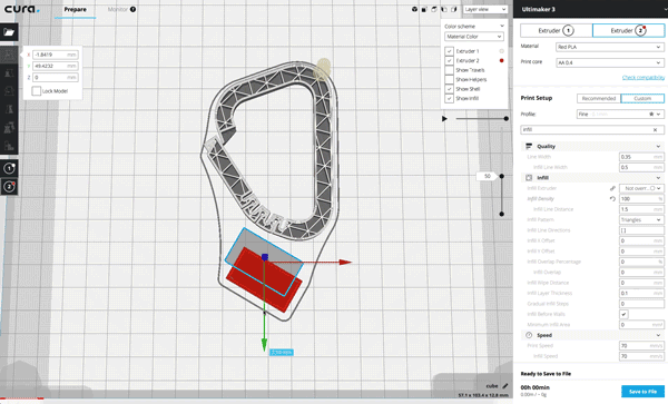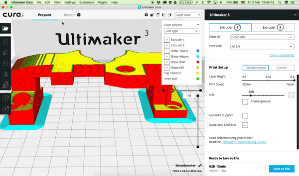 【3D列印快訊】Ultimaker Cura 3.2新版本發(fā)布! 測(cè)試階段已結(jié)束,我們非常有信心地要向您展示Ultimaker Cura 3.2的正式版。 在這個(gè)版本的Ultimaker Cura中,我們優(yōu)化了用戶界面,以減少GPU對(duì)背面剔除的負(fù)擔(dān),增加了新的UI元素, 允許在每個(gè)模型設(shè)置中創(chuàng)建網(wǎng)格物體,甚至只需加載即可進(jìn)一步縮短啟動(dòng)時(shí)間必要的資料。 繼續(xù)閱讀以了解更多新功能。 增強(qiáng)切片功能 自適應(yīng)層 - 截至目前,切片被限制在一個(gè)固定的圖層大小。自適應(yīng)圖層提供一種替代方法,其中圖層的列印厚度 與模型表面的角度配合。 切片算法將較窄的層厚分配給傾斜表面,並將較寬的層厚分配給垂直表面。達(dá)成高質(zhì)量表面的處理結(jié)果,但需要 稍微增加列印的持續(xù)時(shí)間。該設(shè)定可以在實(shí)驗(yàn)(experimental)的分類下找到。 可在「圖層視圖」模式中找到「圖層厚度」的顏色方案讓您能夠預(yù)覽列印的圖層厚度。 從黃色(最厚)到藍(lán)色(最窄)的顏色表示每層的相對(duì)厚度。 樹(shù)狀支撐 - 樹(shù)狀支撐是一種實(shí)驗(yàn)的支撐方法,使用「分支」「生長(zhǎng)」並向需要支撐的區(qū)域長(zhǎng)出,模型上的接觸點(diǎn)更少 ,表面光滑度更好。使他成為有機(jī)品列印的理想選擇。也可以與其他支撐方法一起使用樹(shù)狀支撐。 樹(shù)狀支撐可用於有機(jī)體形成的物件。 UI元素 多層列印平臺(tái)。通過(guò)在軟體首選項(xiàng)中啟動(dòng)多重列印平臺(tái),可以在工作區(qū)中增加一個(gè)新的面板,使您可以在單個(gè)選單中 使用共享設(shè)定管理單獨(dú)的列印平臺(tái)。每個(gè)單獨(dú)的列印平臺(tái)會(huì)被加到Cura Connect的列印陣列中。 這解除了多次清除列印平臺(tái)的需要,以便更好地縮放操作,並更大限度地延長(zhǎng)正常運(yùn)行時(shí)間。 在單個(gè)選單中有多個(gè)列印平臺(tái)的切片檔案。 更快啟動(dòng) - 現(xiàn)在在增加列印機(jī)時(shí)就會(huì)載入列印機(jī)定義,不是在啟動(dòng)時(shí)載入所有可用的列印機(jī),與之前版本相比,減 少啟動(dòng)的時(shí)間。 網(wǎng)格在每個(gè)模型設(shè)置 - 其他選項(xiàng)已加到每個(gè)模型的設(shè)定,提供簡(jiǎn)化的方法來(lái)分配模型列印為網(wǎng)格。當(dāng)處?kù)蹲远x模 式時(shí),可以將不同的切片設(shè)定分配到列印的不同部分,例如,一個(gè)網(wǎng)格作為自定義的支撐時(shí),自動(dòng)生成的支撐材料 不會(huì)放置在你不喜歡的地方。 下拉列表讓您可以指定網(wǎng)格的功能: 正常模型 (Normal model )- 將網(wǎng)格列印成正常模型。 列印成支撐(Print as support ) – 將網(wǎng)格列印為支撐材料。 不與其他模型重疊支撐(Don't overlap support with other models ) - 在網(wǎng)格重疊的區(qū)域不會(huì)生成支撐材料。 修改與其他模型重疊的設(shè)定(Modify settings for overlap with other models) - 將網(wǎng)格重疊的部分中列印網(wǎng)格以代替模型。 修改其他模型的填充設(shè)定(Modify settings for infill of other models) - 網(wǎng)格將在網(wǎng)格重疊的部分列印為填充。 修改其他模型的填充設(shè)定 這個(gè)登山扣是一個(gè)長(zhǎng)方體網(wǎng)格切片,選擇「修改其他模型的填充設(shè)定(Modify settings for infill of other models)」。 網(wǎng)格跟分配給更密集的填充設(shè)定的其餘模型相比,能給重疊部分更大的耐用性。 背面剔除 - 通過(guò)只渲染模型的可見(jiàn)曲面,而不是渲染整個(gè)模型,讓層視圖在性能上更加提升。明顯提升了幀速率, 並降低了GPU的負(fù)荷。 更新側(cè)欄到QtQuick 2.0 - 應(yīng)用程式欄位已更新成提升速度,更合適的寬度和風(fēng)格,並為用戶提供下拉式選單,以配 合啟用的Ultimaker Cura主題,而不是操作系統(tǒng)的主題。 隱藏側(cè)邊欄 - 現(xiàn)在可以通過(guò)選擇View> Expand / Collapse Sidebar,或使用熱鍵CMD + E(Mac)或CTRL + E (PC和Linux)來(lái)隱藏或顯示側(cè)邊欄。這是為了擁有更寬廣的列印平臺(tái),讓在小屏幕上顯示的列印平臺(tái)擁有更大的可 見(jiàn)性。 隱藏邊欄以獲得更好的視圖 禁用「發(fā)送切片訊息」- 在第一次啟動(dòng)時(shí)增加禁用「發(fā)送切片訊息」的快捷方式,使需要隱私的用戶更容易保持切 片訊息的私密性。點(diǎn)擊禁用按鈕會(huì)將用戶帶到首選項(xiàng)(preferences),他們可以自行編輯首選項(xiàng)。 簽名的二進(jìn)製檔案(Windows)- 對(duì)於安全意識(shí)的用戶,Windows安裝程序和Windows二進(jìn)製檔案已經(jīng)過(guò)數(shù)位簽 名,以防止“未知應(yīng)用程序”警告和病毒掃描程序誤報(bào)。 每臺(tái)擠出機(jī)開(kāi)始/結(jié)束gcode檔案-現(xiàn)在可以查看和編輯來(lái)自兩個(gè)擠出機(jī)開(kāi)始與結(jié)束時(shí)變量的gcode片段,進(jìn)而在不同 切片環(huán)境中的配置檔案裡建立一致性。 視圖查看優(yōu)化- 3.1版中的快速攝影機(jī)控制鍵已經(jīng)過(guò)修改,可以創(chuàng)造更精確的等距視圖,前視圖,頂視圖,左視圖 和右視圖。 快速相機(jī)控制 OctoPrint外掛加到外掛導(dǎo)覽器 - 這個(gè)外掛已經(jīng)移動(dòng)到外掛導(dǎo)覽器。這個(gè)外掛可以使用OctoPrint通過(guò)Ultimaker Cura 介面(版本 3.2 或更高階)來(lái)管理列印機(jī)。 修復(fù)錯(