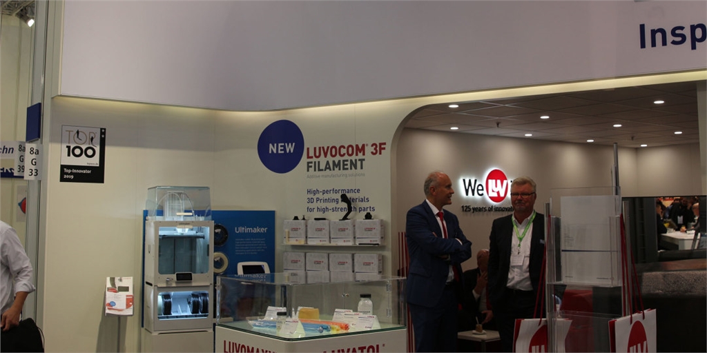 「Lehvoss Group公司」在會場上使用Ultimaker S5 Pro Bundle列印新款LUVOCOM®3F線材,適用於高性能工業(yè)應(yīng)用,共有四種不同材料,主要材質(zhì)為PAHT®和PET;其中兩款採用碳纖維增強(qiáng),具有高度可加工性,不易變形、耐用穩(wěn)定。