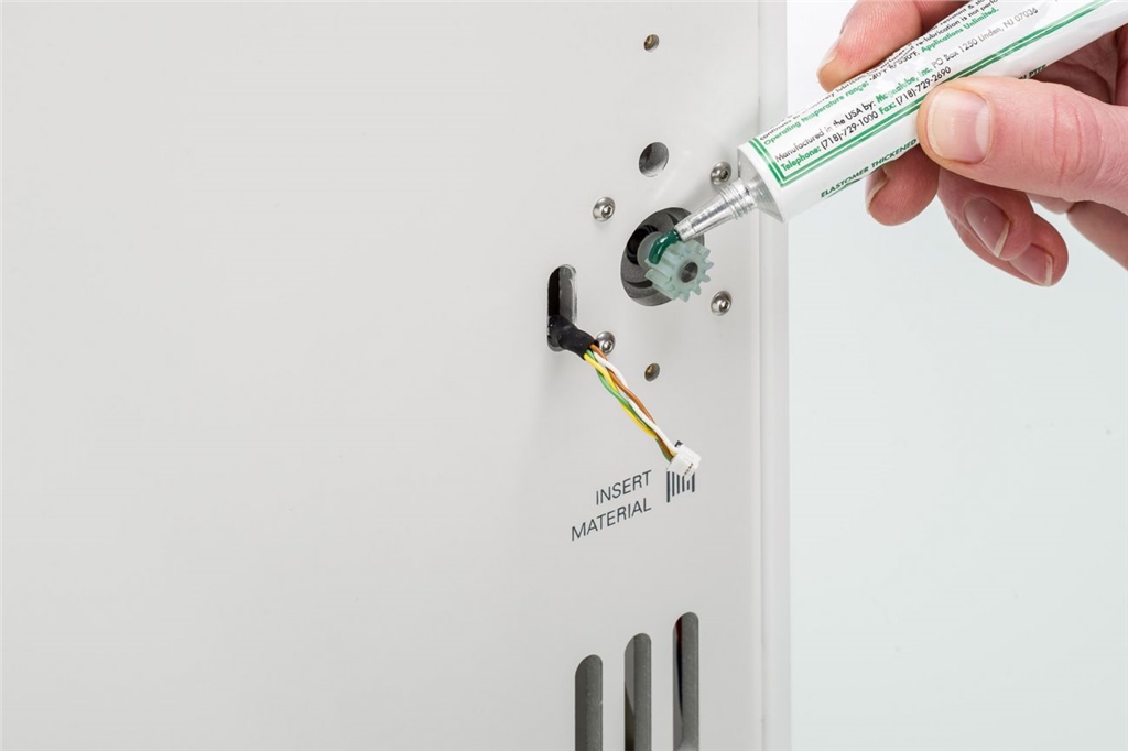 二、線材保存方式 三、維護方式 四、清潔列印機 五、潤滑軸 六、檢查軸的運作 七、檢查短皮帶的張力 八、檢查列印頭前方風(fēng)扇 九、檢查噴嘴蓋的品質(zhì) 十、潤滑Z馬達的Z軸螺絲 十一、清潔送料器 十二、清潔列印噴嘴(影片這裡看) 十三、潤滑進料器齒輪 十四、更換送料管 十五、清潔系統(tǒng)風(fēng)扇 十六、潤滑絞鍊 一、更新韌體 我們會定期發(fā)布最新版本的Ultimaker S5韌體。 為確保您的Ultimaker S5配備最新功能,建議定期更新韌體。可以在連接網(wǎng)路後使用Ultimaker S5或使用USB來執(zhí)行。 藉由網(wǎng)路進行更新 1.通過網(wǎng)路選單中的Wi-Fi或以太網(wǎng)將列印機連接到網(wǎng)路。 2.到主選單>維護>更新韌體。 Ultimaker S5現(xiàn)在會直接下載最新韌體進行安裝。這會需要幾分鐘完成。 使用USB更新 通過執(zhí)行以下步驟,可以在沒有網(wǎng)路連接的情況下更新韌體: 1.從下方列表中下載最新的韌體檔案1和2。 2.將韌體檔案儲存在USB上。 3.將USB插入Ultimaker S5的USB插槽中。 4.至主選單>維護>更新韌體。 5.如果USB上有韌體檔案,Ultimaker S5會檢測到檔案。當(dāng)檢測到檔案後,可以選擇啟動韌體的更新。 ?提醒:下載後無需從檔案中拿出兩個檔案。只需將它們放在USB的子目錄下。 韌體檔案 韌體檔案1 韌體檔案2 二、線材保存方式 當(dāng)您使用多個線材或不使用材料進行列印時,正確存放方式非常重要。如果材料保存方式不正確,可能會影響質(zhì)量和可用性。 為了使您材料維持在最佳狀態(tài),保存方式非常重要: 涼爽乾燥 避免陽光直射 放進可反覆密封的袋子 PLA,Tough PLA,Nylon,CPE,CPE +,PC,TPU 95A,PP和Breakaway的最佳儲存溫度介於-20至+ 30°C之間。對於ABS,建議溫度介於15和25°C之間,PVA從 0到30°C。建議PVA,TPU 95A,PP和Breakaway的相對濕度要低於50%。若這些材料在較高的濕度下,會影響材料的質(zhì)量。 您可以將材料存放在可反覆密封的袋子中,包括所提供的乾燥劑。對於PVA,建議將列印後的線材直接存放於可重 覆密封的袋子中,防止線材吸收濕氣。 三、維護方式 為了確保您的Ultimaker S5處於最佳狀態(tài),我們建議您每年在1,500小時之後的列印時間進行以下維護方式: 每個月 清潔列印機並潤滑軸 每3個月 檢查軸的運作 檢查皮帶的張力 檢查列印頭前方的風(fēng)扇是否有雜物 檢查噴嘴蓋上的品質(zhì) 潤滑Z軸 清理進料器 清理列印噴嘴 每年 潤滑進料器齒輪 更換送料管 清潔系統(tǒng)風(fēng)扇 潤滑鉸鏈 ?貼心提醒:(*)X,Y和Z軸在使用列印機的第一年不需要潤滑。 一年後,需要每個月進行潤滑。 ?貼心提醒:如果使用頻率較高,我們建議您對列印機進行更頻繁的維護,確保最佳的列印效果。 四、清潔列印機 為獲得最佳列印效果,使用Ultimaker S5時應(yīng)保持清潔。建議不要在容易被灰塵覆蓋的房間內(nèi)使用Ultimaker S5,並去除列印機內(nèi)的多餘小塊物體。此外,Ultimaker S5中還有一些部件需要更多的定期清潔。 清潔玻璃/鋁製列印平臺 列印完成後,可能會有列印殘留物或多餘的膠黏著在平臺上。這會造成列印表面不平整。 潛在的污染物是灰塵或脂肪,如手指的油脂。移除列印物件也可能降低膠水的附著品質(zhì)。 建議定期清潔列印平臺並重新塗膠。 在開始新的列印前,請檢查列印平臺的表面。每月至少一次,藉由以下步驟徹底清潔列印平臺: ?請注意:確認(rèn)列印平臺冷卻並降低到Z軸的底部。 1.打開前方的列印平臺夾具,向前滑動玻璃平臺或鋁製列印平臺,然後從列印機中取出。 2.使用溫水和軟性海綿清潔列平臺並去除任何黏著劑。如果需要,可以使用一些清潔劑去除黏著劑,或使用酒精去除任何脂肪物質(zhì)。 3.用乾淨(jìng)的超細(xì)纖維布擦乾列印平臺。 4.將玻璃或鋁製底座放在加熱平臺上,警告標(biāo)籤要朝上。確保它卡入後部的平臺夾具並關(guān)閉前面的平臺夾具固定。 清潔玻璃零件 應(yīng)定期清潔列印機的所有玻璃零件(玻璃門和觸控螢?zāi)唬┣宄覊m或指紋。 可使用乾燥布面或必要時使用稍微潮濕的細(xì)纖維布進行清潔。 清潔噴嘴 貼心的小配件「矽膠噴嘴蓋」非常重要,它可以保持穩(wěn)定的噴頭溫度,同時防止材料回流到噴頭,我們建議每三個月至少檢查一次! 使用Ultimaker S5時,材料可能會卡在噴嘴外部並降解。雖然這不會損壞列印機,但建議保持噴嘴清潔以獲得最佳列印效果。 開始新的列印之前,請檢查噴嘴。每月至少一次,通過下方步驟從噴嘴外部取出塑料: 1.在Ultimaker S5上,導(dǎo)覽至設(shè)定選單,選擇列印噴嘴1,然後點擊右上角的圖示並選擇設(shè)定溫度。 2.使用控制將目標(biāo)溫度設(shè)定為150°C。對噴嘴2重複此操作,並確保此噴嘴已下降。 3.等外面的材料變軟。當(dāng)噴嘴很熱時,小心用鑷子取出材料。 ?請注意:在此過程中,請勿觸摸噴嘴,清潔時請小心,因為它們會變熱。 ?請注意:噴嘴蓋易碎且具密封功能。使用鑷子時請小心不要損壞噴嘴蓋。 ?貼心提醒:材料可能在噴嘴外側(cè),噴嘴蓋上方聚集得較多。開啟列印頭風(fēng)扇檢查是否屬於這種情況。為確保列印頭能順利關(guān)閉,可使用鑷子將材料移除,如上所述。 清潔送料管 送料管中的顆粒會妨礙線材平滑移動或混合顏色。至少每月清潔送料管一次,遇到線材卡料問題時,需要清潔送料管,必須先將它們從列印機上取下。 1.從移除材料開始。到設