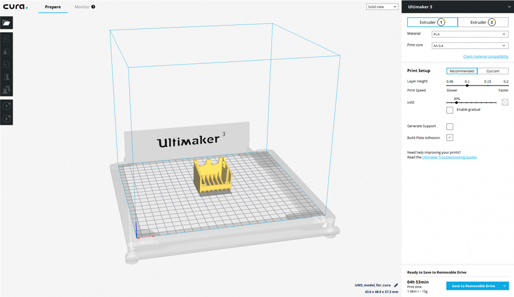 【3D列印軟體】歡迎使用Ultimaker Cura 3.0 Ultimaker Cura 3.0為使用者提供了最簡單,最便捷的體驗,無論是新手還是專業(yè)人士。使用新的界面,準備好你的3D 列印模型將比以往更加簡單。 隨著第三方外掛的開啟了所有新的可能性,我們決定從2.7移到3.0來標記這個新時代的完美方式。在全球範圍內(nèi)為100多萬名 使用者提供服務(wù),我們的軟體已經(jīng)被設(shè)計成為專業(yè)人士採用3D列印工作流程的解決方案。 Ultimaker Cura 3.0提供: 全新UI介面。使用推薦的設(shè)定,使用直觀的滑軌準備列印,或使用自行設(shè)定單獨調(diào)整超過200個獨特的切片參數(shù),進行快速簡便的列印設(shè)定。 降低列印時間和材料消耗。推薦模式具有新的預(yù)設(shè)設(shè)定,目標在於節(jié)省列印時間,使用的材料和材料成本。 專業(yè)外掛集合。將Ultimaker Cura無縫集成到您的工作流程中。使用行業(yè)標準CAD軟體包(像是SolidWorks和Siemens NX), 或開發(fā)自己的定制外掛來滿足您的特定需求。 以下顯示Ultimaker Cura 3.0中的一些功能與改進和修復(fù)錯誤: 改進UI Ultimaker Cura 3.0具完全更新的UI和配色方案。 啟動速度更快。與之前的版本相比,啟動速度已經(jīng)減少了一半。 重新設(shè)計的啟動螢?zāi)弧?/strong>啟動畫面已經(jīng)重新設(shè)計,以回應(yīng)新的界面。 滑軌。推薦模式現(xiàn)在使用滑軌來改變切片參數(shù): •層厚和列印速度。輕鬆控制列印品質(zhì)與列印速度成正比。 •填充。填充密度現(xiàn)在可以輕鬆使用滑軌增加到10%。 使用直觀的滑軌輕鬆控制列印的功能。 光柵化板。現(xiàn)在列印平臺能夠顯示10mm和1mm的刻度,以獲得更精確的模型定位。 列印平臺現(xiàn)在顯示為10mm和1mm的刻度,用在更精確的模型定位上 列印機按鈕。列印機按鈕已從標籤更改為按鈕,按鈕顏色已更改,以符合新的配色方案。 圖層視圖位置。圖層視圖下拉框已從左下角移動到右上角。 列印時間位置。列印時間位置從3D導(dǎo)覽器的右下角移到通過網(wǎng)路列印/儲存到檔案的按鈕左側(cè)。 標籤寬度。標籤功能的寬度將根據(jù)字體空間(支持多種語言)而改變。 第三方外掛和CAD集合 第三方外掛的功能。專業(yè)人士現(xiàn)在可以用自己開發(fā)的外掛取得更多Ultimaker Cura 的功能以簡化其工作流程。 目前可用SolidWorks和Siemens NX的兼容外掛,可以在外掛瀏覽器中找到??梢詥螕舭惭b外掛,他將會在使用時自動更新。 SolidWorks集合。與SolidWorks 2016及以上版本兼容,此外掛可達成兩個軟體之間的無縫集合。 在SolidWorks中準備您的設(shè)計。 按「匯出到Ultimaker Cura」的按鈕。 將Ultimaker Cura打開,將您的設(shè)計匯入,準備切片和列印。 Siemens NX集合。在Siemens NX中創(chuàng)造的設(shè)計可以點擊一個按鈕送進Ultimaker Cura。如果在Siemens NX中修 改了設(shè)計,可以在Ultimaker Cura中再次單擊按鈕進行更新。此外掛與Siemens NX 10和11兼容。 新的切片功能 PVA的逐漸支撐。列印時間和材料消耗量通過在支撐體中列印較少的PVA填充並在接近頂部時減少。這同時減少了 PVA溶解的時間。在(額外)精細和正常的品質(zhì)設(shè)定中,PVA填充層會列印雙重厚度,減少更多的列印時間。 填充在邊緣會變得更加密集,需要較少的支撐材料。 左側(cè)的列印是使用Cura 2.6進行切片。右邊列印是使用Ultimaker Cura 3.0進行切片。請注意右邊列印的是不太密集 的支撐 - 支撐向上與邊緣時會逐漸增加密度。 Z縫選擇。讓使用者控制要在哪裡放置接縫 - 將其隱藏在凸角或容易移除的位置。這不會使角落尖角影響接縫位置。 交叉填充。與其他填充類型相比,分形圖案填充需要些許的內(nèi)縮。 這對於彈性材料是有用的,因為它在擠出時會導(dǎo)致少數(shù)材料伸長。由此提供的內(nèi)部結(jié)構(gòu)使彈性模型具有更大的阻力, 保持所有方向有“軟”的特性。 在Ultimaker Cura的交叉填充 使用TPU 95A的列印範例 四分之一立方體填充。類似於四面體(八位字節(jié))填充,但是一半的線被移動到週期的一半。這種模式犧牲了八角形 填充物的一些剛性以獲得更大的韌性。 去除表面寬度。從模型中去除薄的表面,以防止列印噴頭彎曲,反過來又可以防止振動。缺少振動也會提高輕微突出 部分的列印品質(zhì)。 表面擴張距離。切割陡峭突出的表面使列印不那麼堅固。 透過擴張牆壁厚度的外觀,功能將得到更好的支撐。此外,像填充物頂部像是塔的功能會更強。 增加表面壁數(shù)。此功能現(xiàn)在為預(yù)設(shè)啟用。在填充物頂部直接列印額外的表面可能會導(dǎo)致縫隙,捲曲。 首先通過表面周圍列印牆壁來減少,並且提高列印的速度。 表面最小擠出。阻止Ultimaker Cura 3.0填補可能已經(jīng)填充的小間隙,從而減少細線,以及更好的頂 部細節(jié)和更快速的列印。 PVA回縮。在列印噴嘴更換期間PVA的縮回長度增加。結(jié)合減小的回縮距離和稍微高的最大計數(shù), 這確保減少的串聯(lián)和更可靠的結(jié)果。退回的最小行駛距離減小,最大計數(shù)略微增加。顯著減少了列 印的時間。 修復(fù)Bug 在我們社群的幫助下,我們已經(jīng)解決了以下問題: •連接到列印機時,訂製的材料配置檔案將不再發(fā)送到Ultimaker Cura •同步z-hop與更改圖層 •MacOS 上的內(nèi)存洩漏 •檔案打開時列印機名稱未加載 •預(yù)設(shè)情況