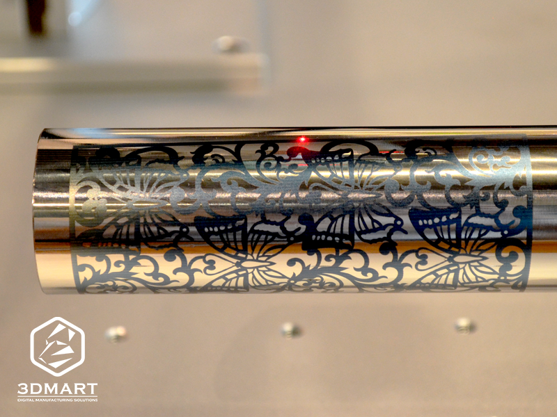 我們使用不鏽鋼圓柱進(jìn)行金屬雷射雕刻,雕刻尺寸為4.5 x 10cm的花紋,最後的效果呈現(xiàn)非常精美,解析度與精準(zhǔn)度表現(xiàn)都很好,總雕刻時(shí)間為20分鐘。