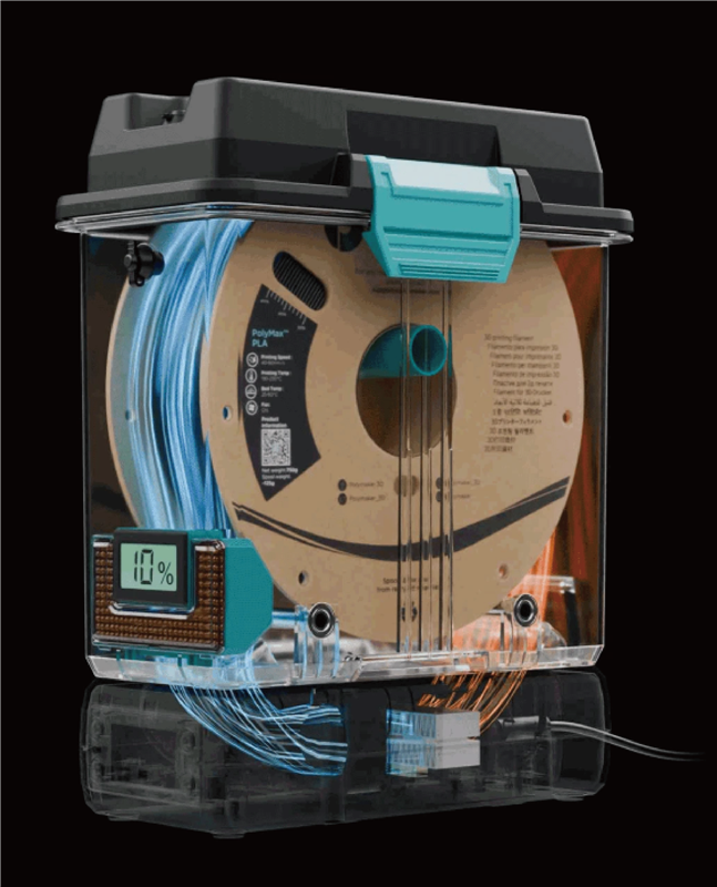 Dry box (filament dehumidifier) - is a necessary tool to avoid 3D printing filaments adsorbing moisture. Especially in such countries as Hong Kong humidity is very high and 3d printing filaments like PVA or Nylon will quickly absorb moisture from the air and become unprintable. To avoid it, they should be stored in a very dry environment, like a dry cabinet.