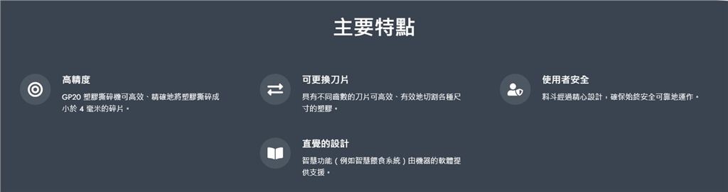 3Devo Plastic Shredder GP20 塑膠粉碎機(jī) 3Devo Plastic Shredder GP20 塑膠粉碎機(jī)能將任何形狀和尺寸的塑膠回收成顆粒尺寸的 3D 列印材料。這種雙重設(shè)計將智慧塑膠粉碎機(jī)與整合式造粒機(jī)結(jié)合在一起,讓您能夠?qū)W㈧赌男枨螅?span style="color: rgb(0, 0, 0); font-family: Arial, 文泉驛正黑, "WenQuanYi Zen Hei", "儷黑 Pro", "LiHei Pro", 微軟正黑體, "Microsoft JhengHei", sans-serif; font-size: 16px;">粉碎機(jī)的功能使您可以自由、靈活地將其整合到任何行業(yè)的任何項(xiàng)目中。