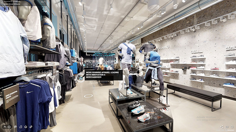 (NIKE米蘭店有三層樓,在線上逛街時也能實際上下樓參觀,過程有趣、更不需要人擠人。)