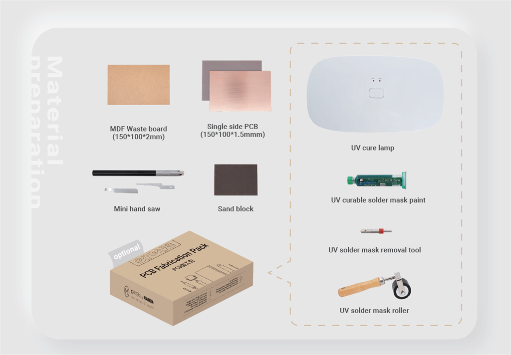 1. 用尺寸為100*150mm的2mm MDF板切割成廢料板。(也可以重複使用PCB板)