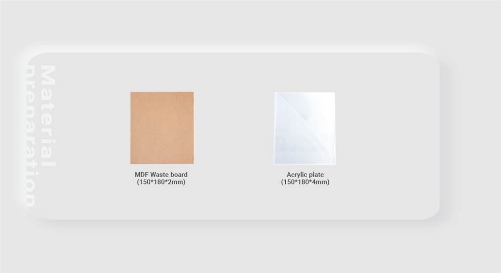 1. 使用尺寸為100*100mm的2mm MDF板切割成廢板。