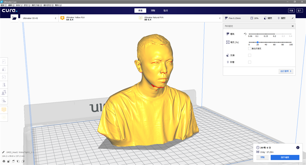 掃描完成後的STL檔案就能直接進(jìn)行3D列印,免開模、更快速,同時能符合客製化商品的新需求及趕件交期,這裡直接丟進(jìn)Ultimaker Cura讓大家看一下檔案效果。