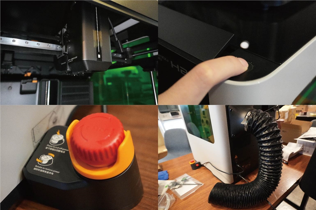 H2D 全雷射版標配一個紅色的可按壓緊急停止按鈕。