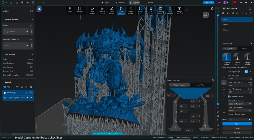 對(duì)於高級(jí)和專業(yè)級(jí)的用戶,Magic Support 提供一鍵生成複雜混合支撐的功能。