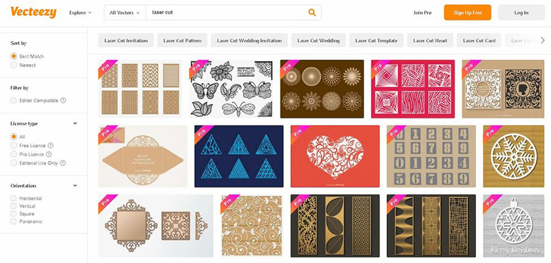 在Vecteezy網(wǎng)站上搜尋關(guān)鍵字時(shí),有向量圖、照片或影片三種類型選擇,資料量非常大,且絕大部分都完全免費(fèi);可以下載向量圖檔,來進(jìn)行雷射切割,下載照片檔案也能直接進(jìn)行雷射雕刻,Vecteezy除了能用於雷射加工應(yīng)用,也能做為設(shè)計(jì)者日常的靈感資料庫。(點(diǎn)我前往)