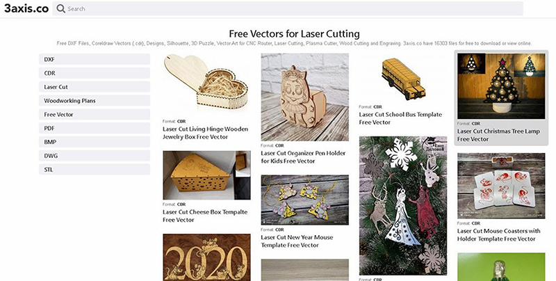 3axis.co是專門為雷射切割/雕刻技術(shù)所提供的免費(fèi)資料庫,有各種完成品的外觀預(yù)覽,針對(duì)木工設(shè)計(jì)分享一系列檔案,從吊燈、收納盒、鞋櫃、椅子、飾品,可以下載DXF、DWG、CDR或BMP等多種格式的免費(fèi)雷射切割設(shè)計(jì),有超過16,000個(gè)檔案,並且不斷更新內(nèi)容。(點(diǎn)我前往)