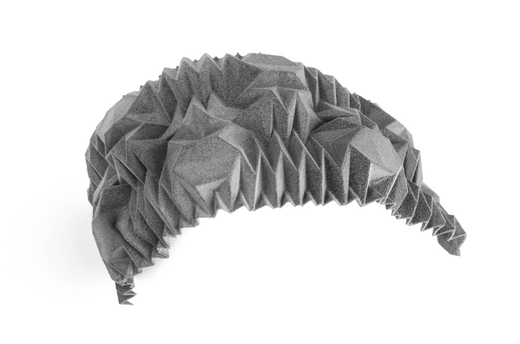 Sinterit Lisa使用的Flexa Black足夠柔軟具有彈性,這種材料能適合穿戴,同時材料能保持與傳統(tǒng)服裝相互呼應(yīng)的形式。在「霸王別姬」中選擇Flexa Black的黑色正好與表演調(diào)性相呼應(yīng),但對於服裝設(shè)計師來說,另一款Flexa Bright材料可能更令人心動,除了完美的強(qiáng)度特性之外,還能染色。其他材料,如Flexa Soft,硬度最低、適合用於感官面料和運(yùn)動服原型。