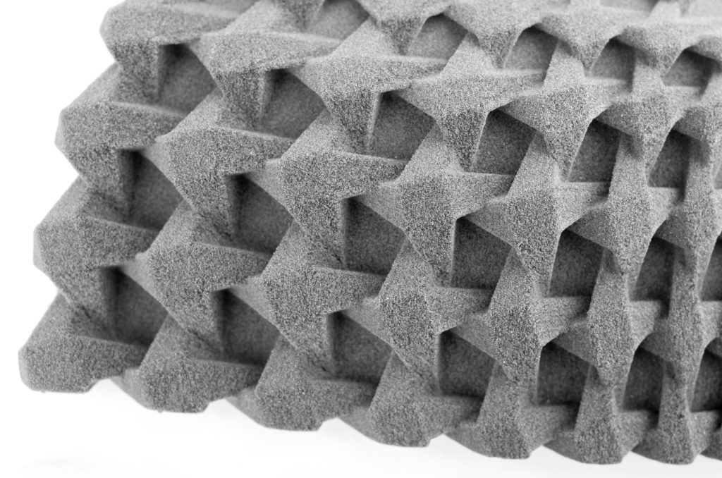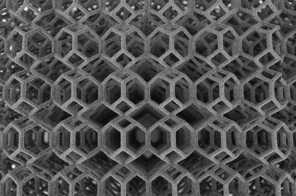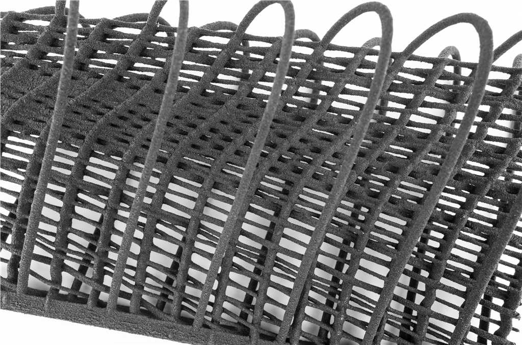 由於無須支撐結(jié)構(gòu),SLS的成型結(jié)構(gòu)更加靈活,因此可以3D列印針織物和編織材料,這也是由設(shè)計師先開始的。例如六邊形結(jié)構(gòu)能在壓力下彎曲並變形,如果搭配使用柔韌材料,就能讓面料仍擺脫盔甲般的束縛。如今,紡織公司將3D列印機(jī)用於生產(chǎn)新的結(jié)構(gòu)纖維,從高品質(zhì)的裝飾面料、到家具和汽車工業(yè)的室內(nèi)裝潢、室內(nèi)設(shè)計或舞臺佈景的一部分。