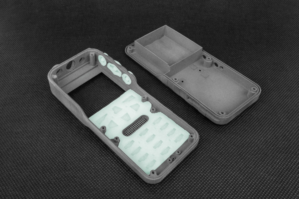 除了對講機主體使用PA12尼龍粉末列印,配件如TPU天線及彈性矽膠按鈕也使用Sinterit Lisa 3D列印機開發(fā)原型。所有零件以開模製作將花費超過四萬美元,比起一次性的費用,設(shè)計師選擇投資SLS 3D列印機設(shè)備;不但省下75%的花費,還能用於後續(xù)的其他專案。以往該公司外包製作的專案平均需等待幾週並花費八千美元以上,這次設(shè)計師決定嘗試內(nèi)部開發(fā),整個過程耗時兩天、費用不到兩百美元。由於3D列印的品質(zhì)精良,設(shè)計原型可以提供客戶測試確認(rèn),定案後才製作量產(chǎn)模具。