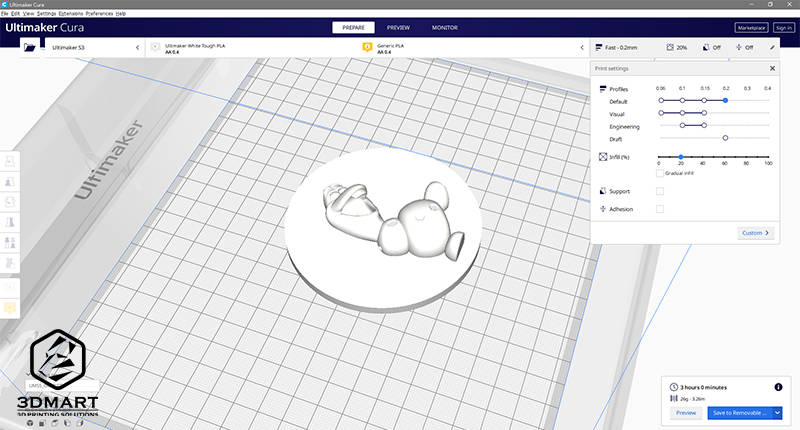 本次使用的是白色 Tough PLA 在Ultimaker 3D列印機(jī)中完成,將完成後的雪寶模型放到FormBox真空成型機(jī)當(dāng)中。如果沒有3D列印機(jī)也可以用黏土手捏代替,像小編這樣的手殘工藝,還是使用3D列印機(jī)比較合適,商城也有FormBox+3D列印機(jī)的優(yōu)惠組合喔!