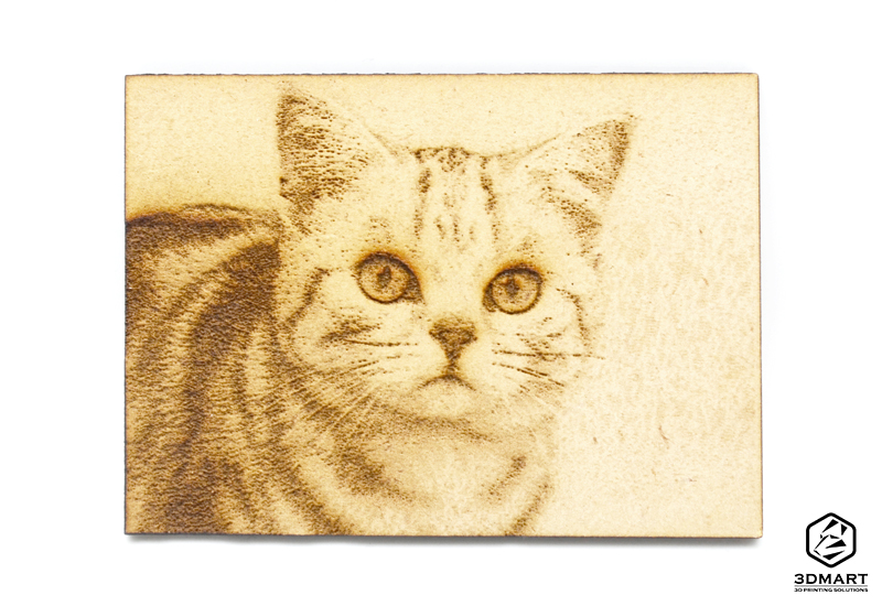 我們使用高解析度的貓咪圖片進(jìn)行雷射雕刻,動(dòng)物皮膚上細(xì)緻、濃密的毛髮、深邃的瞳孔,讓愛(ài)貓的小編非常期待雷射雕刻成品的效果!
